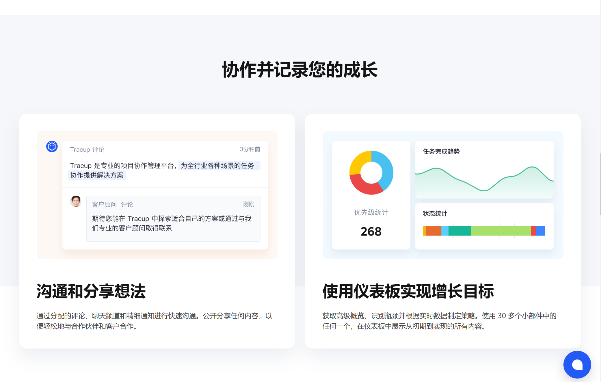 除此之外,Tracup还提供了一些其他的功能,比如在线文档共享和实时进展跟踪等,这些功能都可以帮助团队成员更好地协作和交流。