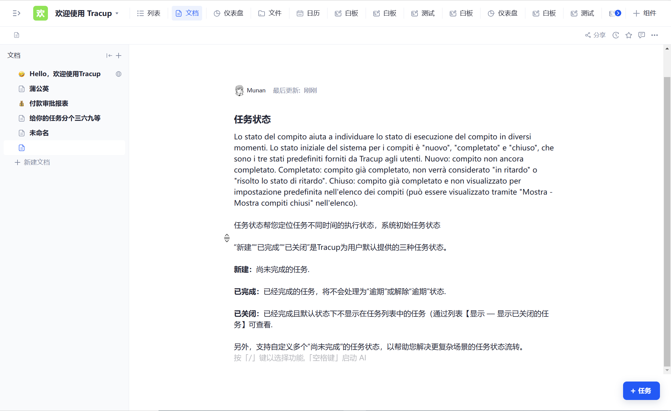 多语言支持让跨国团队更容易进行沟通和协作。无论您和您的团队成员来自何处,使用Tracup文档都能够消除语言障碍,确保信息的准确传达。在Tracup文档中,您可以轻松地创建和分配任务、跟踪进度、共享文件和讨论问题,而不必担心语言沟通上的问题。